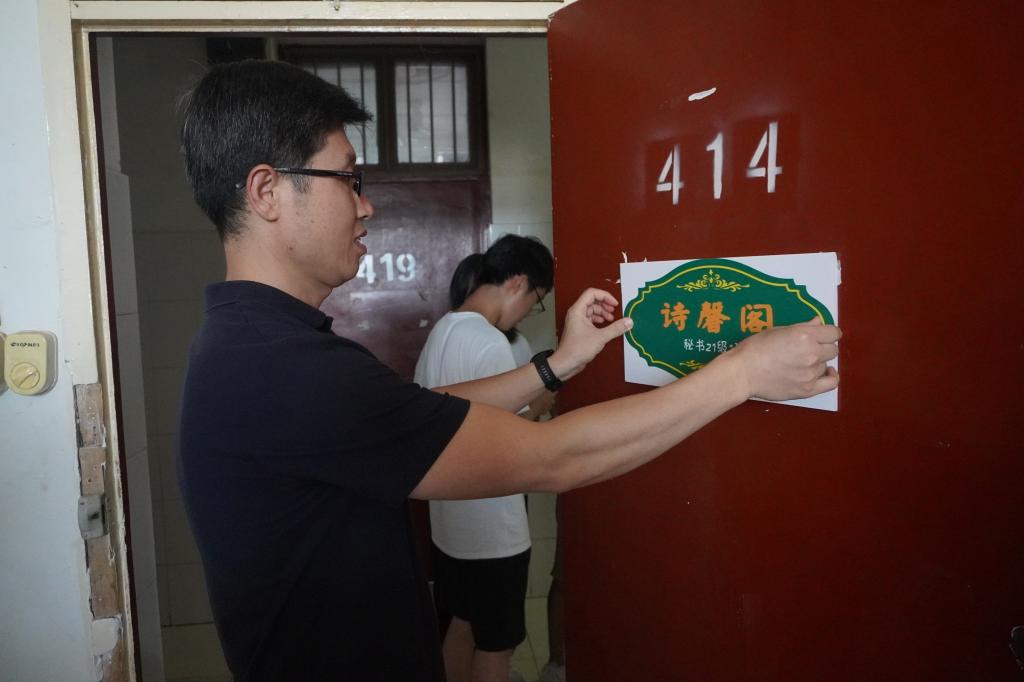 芦伟宣布koko体育官网第三届宿舍风采大赛正式启动。出席启动仪式嘉宾为2021级新生宿舍授予了雅室门牌,并前往学生宿舍张贴门牌和党员先锋示范岗门牌。