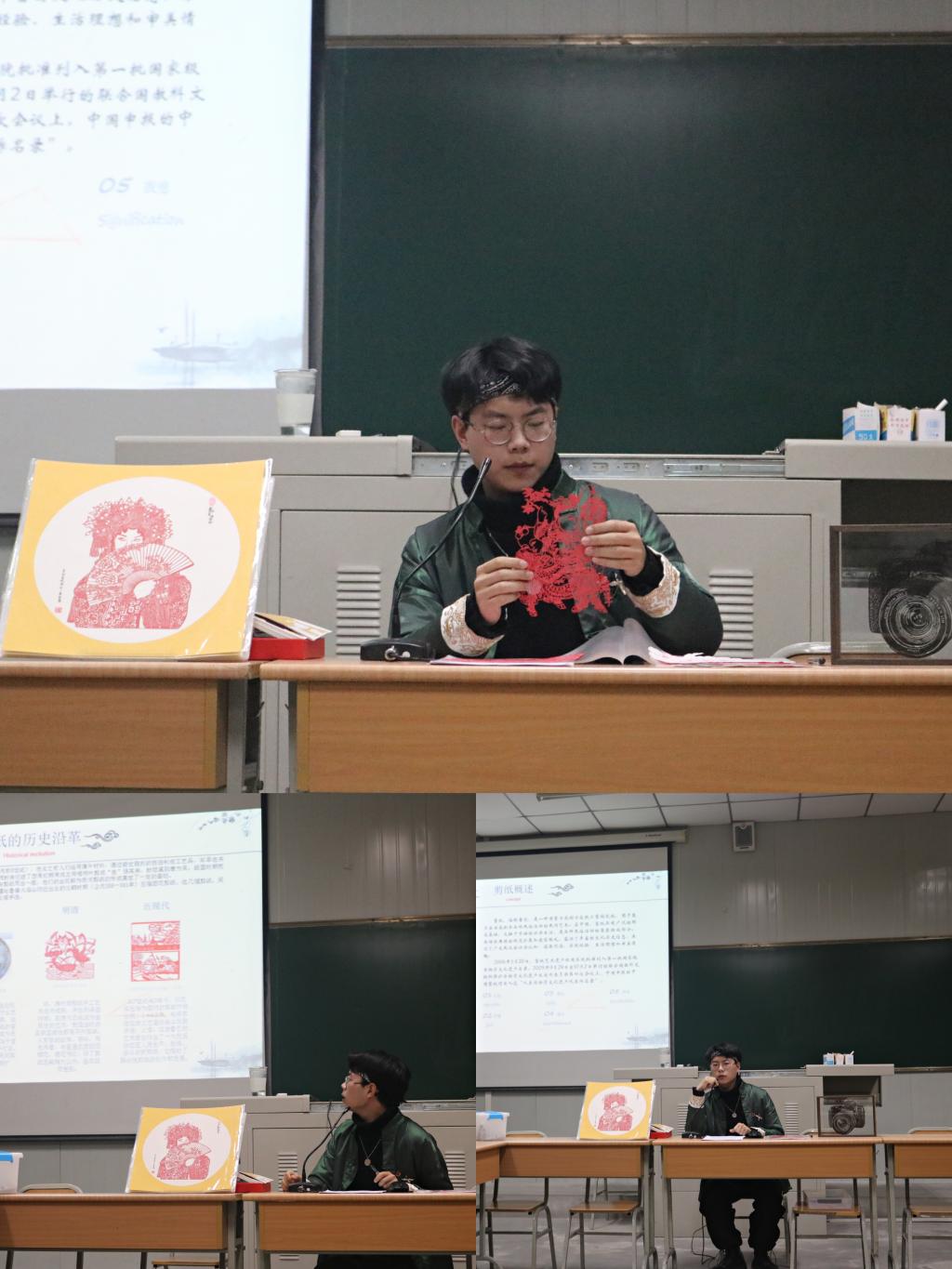 三为足践•纸上见智,梁少华讲解了剪纸所用的工具以及步骤,吸引了同学们的兴趣,让同学们体会到剪纸文化离我们并不远,就存在我们的身边,当你拿起一件习以为常的工具,它或许就会成为你传承剪纸文化的载体。