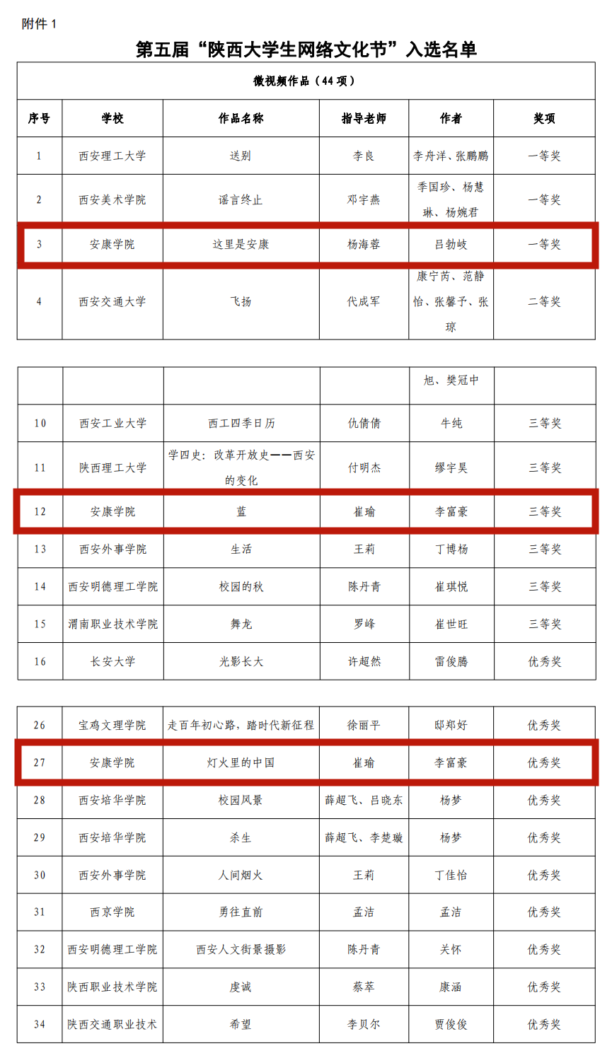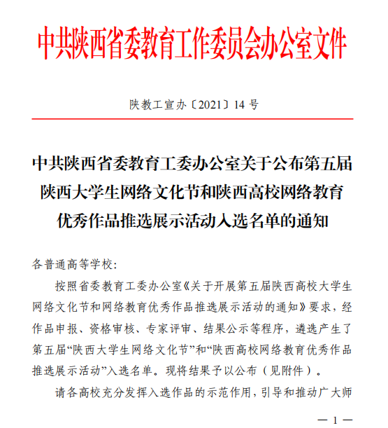 日前,由陕西省委教育工委办公室组织的第五届“陕西大学生网络文化节”评选结果落幕,经作品申报、资格审核、专家评审、结果公示等程序,遴选产生了第五届“陕西大学生网络文化节”和“陕西高校网络教育优秀作品推选展示活动”入选名单。koko体育官网网络与新媒体专业2017级学生吕勃岐微视频《这里是安康》荣获微视频类一等奖,李富豪摄影作品《蓝》、《灯火里的中国》分别获摄影作品类三等奖和优秀奖。