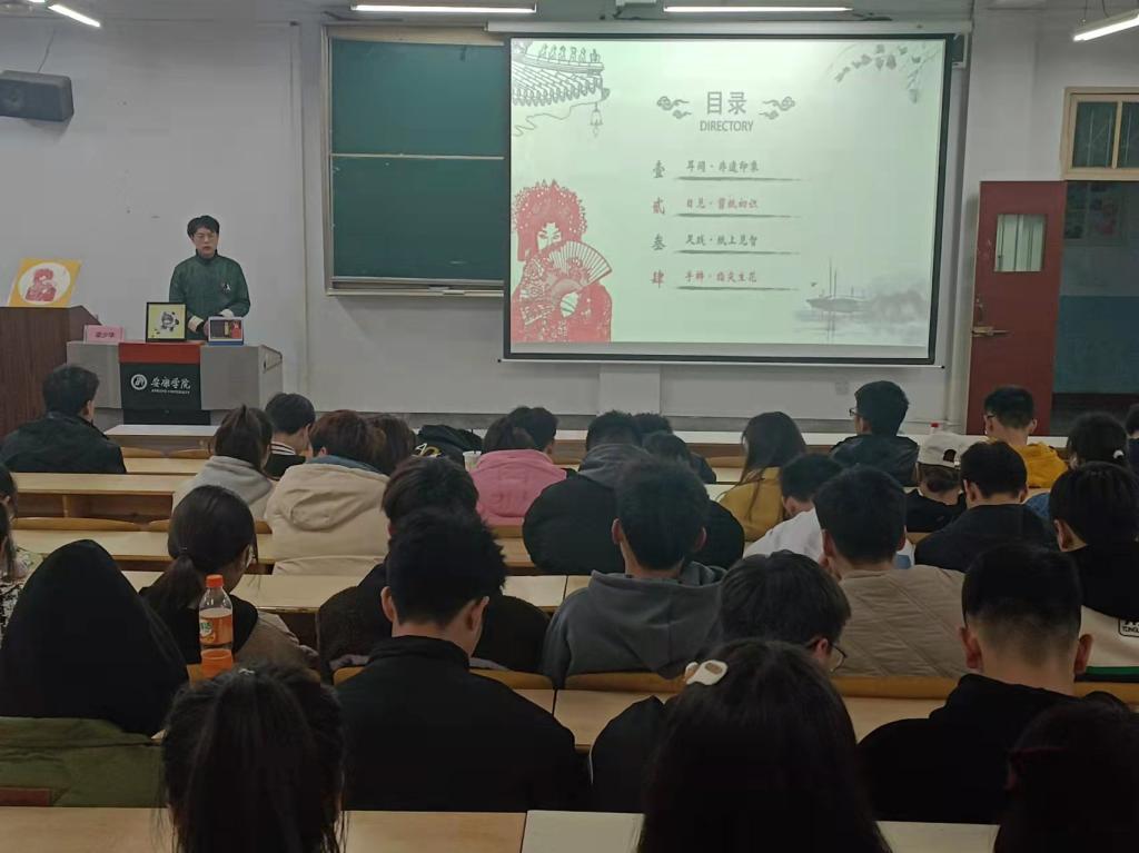 非物质文化遗产的传承与保护,是基于目前传统文化保护链条断开的前提下提出的,高校教育具有得天独厚的条件,可以依靠自身力量与高校学生,传承中华非物质文化遗产,并对其进行创新性保护,并不断发展。为深入探索非物质文化遗产传承的意义,以及传承与保护的途径,3月1日晚上7时,koko官网学生、西安市非物质文化遗产保护协会会员梁少华在1510教室为体育学院21级全体学生开展“年轻的非遗”剪纸文化分享讲座,讲座由体育学院康梦瑶老师主持。