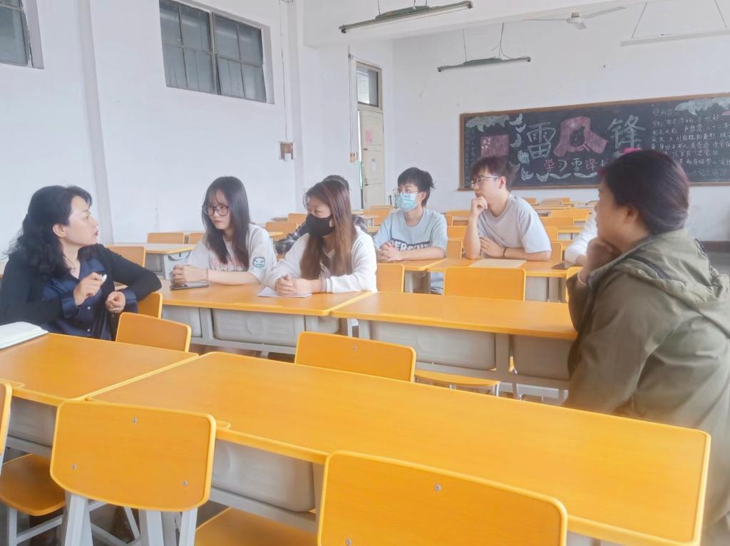 艾全霞与毕业班班干部进行交流座谈。希望班干部担起职责,用高度的责任心帮助督促完成就业,详细做好班级就业台账,带头积极就业,形成积极良好的就业氛围。