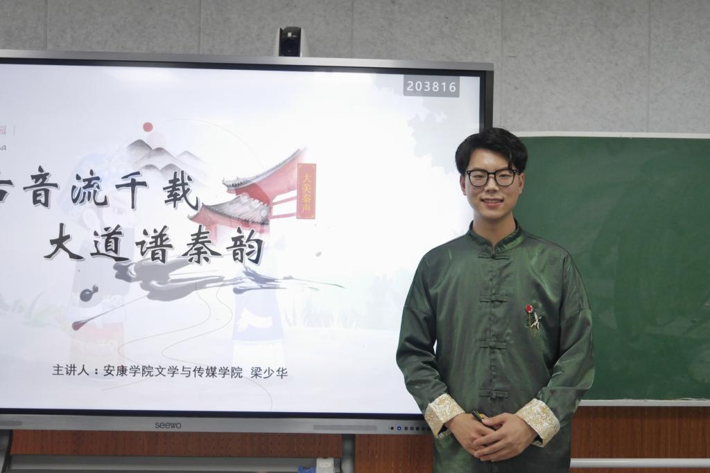 为了让非物质文化遗产在地方高校焕发生机,让更多年轻人了解秦腔艺术,为秦腔的受众群注入新鲜血液。5月18日,koko官网学生梁少华受邀在师范生职业技能训练中心4201室为留学生做“古音流千载·大道谱秦韵”—戏曲进校园互动讲座。国际教育学院副院长陈蕾、辅导员与在校留学生一起感受秦腔艺术之美。