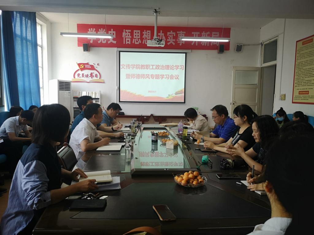 党总支书记芦伟首先领学了《关于实行以增加知识价值为导向分配政策的若干意见》有关条款及解读,并通报了违反高校教师职业行为十项准则典型案例,进行了现场互动探讨——基于“经济人”假设的高校教师社会兼职的表征及制度规范。随后,全体教师一起观看了学习视频《我和我的信仰——劳模精神讲述》。芦伟要求,全体教师要高度重视师德师风建设,守好教师的职业道德底线,切实履行立德树人职责。