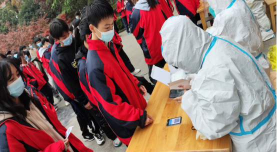 18日早晨,迎来了第一次校内全员核酸检测。作为实习团队队长,我找到实习指导老师,主动请战,承担采样志愿者、协助医生进行核酸采样登记。和老师沟通这事,老师直接拒绝了我的请求,说核酸采样具有一定的危险性,学校领导会先上。我和指导老师争辩了起来,我说学校领导要统管大局,还要继续为抗疫操劳。我是实习队长,我要给其他的伙伴们带头。在我的一再坚持之下,老师答应了我的请求,但要做好全方位的保护。就这样,我从一个实习学生成为了采样志愿者,为抗击疫情穿上了从没有穿过的防护服,这是我长这么大从没经历的事,也是我终生难忘的经历了。
