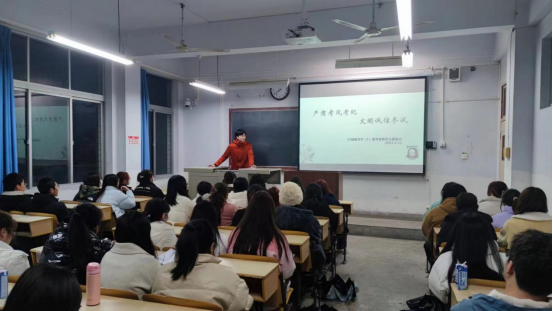 导航痕迹 首页 > 新闻通知 > 学院新闻 > 正文 学院新闻 通知公告 koko体育官网组织开展2022级考风考纪主题班会活动 发布人:koko体育官网 发布日期:2023年02月15日 阅读次数: 为端正考风,严肃考纪,加强学风建设,营造文明、诚信考试的良好氛围,2023年2月12日晚koko体育官网举办22级考风考纪主题班会活动,辅导员李欣逸老师就《koko体育官网学生手册》相关内容向同学们再三强调考风考纪,对考试违纪相关处理办法详细说明,希望每一个同学都能端正考试态度,诚信做人,加深对考试舞弊带来的严重后果的认识。通过本次主题班会,将考试相关规定和要求传达给每一位同学,督促全体学生认真复习、积极备考,用真实可信的成绩展现自己学习能力和学习效果。 撰稿/摄影/魏渝璧 审核/杨海蓉 发布/崔瑜