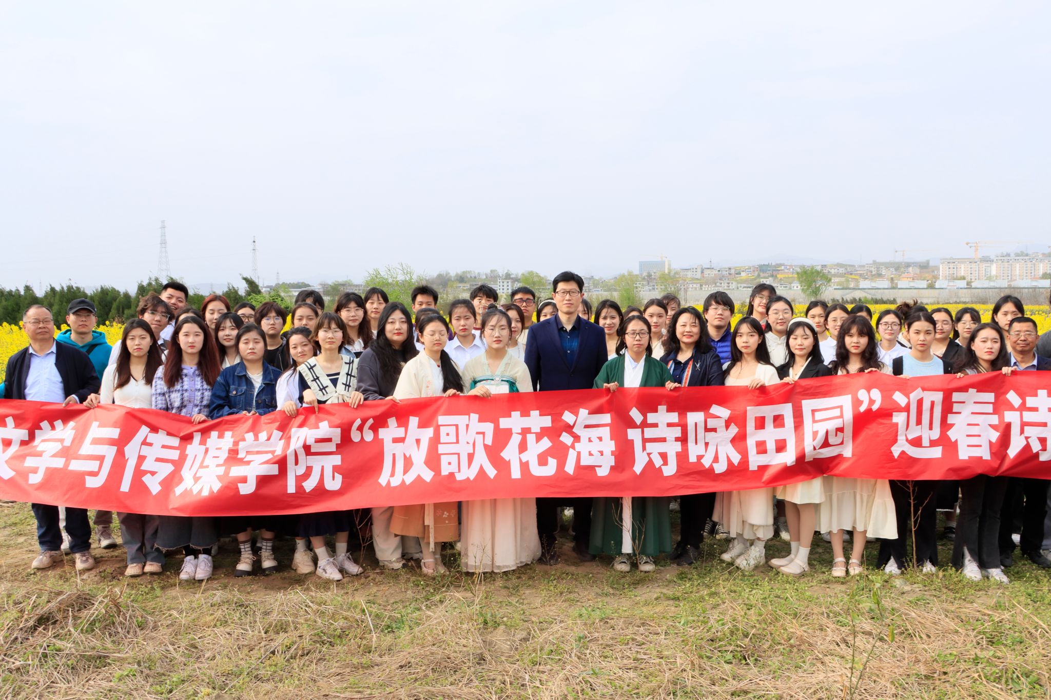 3月15日下午,koko体育官网在张滩镇黄洋河畔油菜花田顺利举办了2023年迎春诗会。学院党总支书记芦伟、副书记杨海蓉、郑继猛教授和安日辉、曹璇璇两名青年教师出席了本次活动。活动由辅导员邹棠华组织,影视戏剧社承办,koko体育官网近70名学生参加了本次诗会。