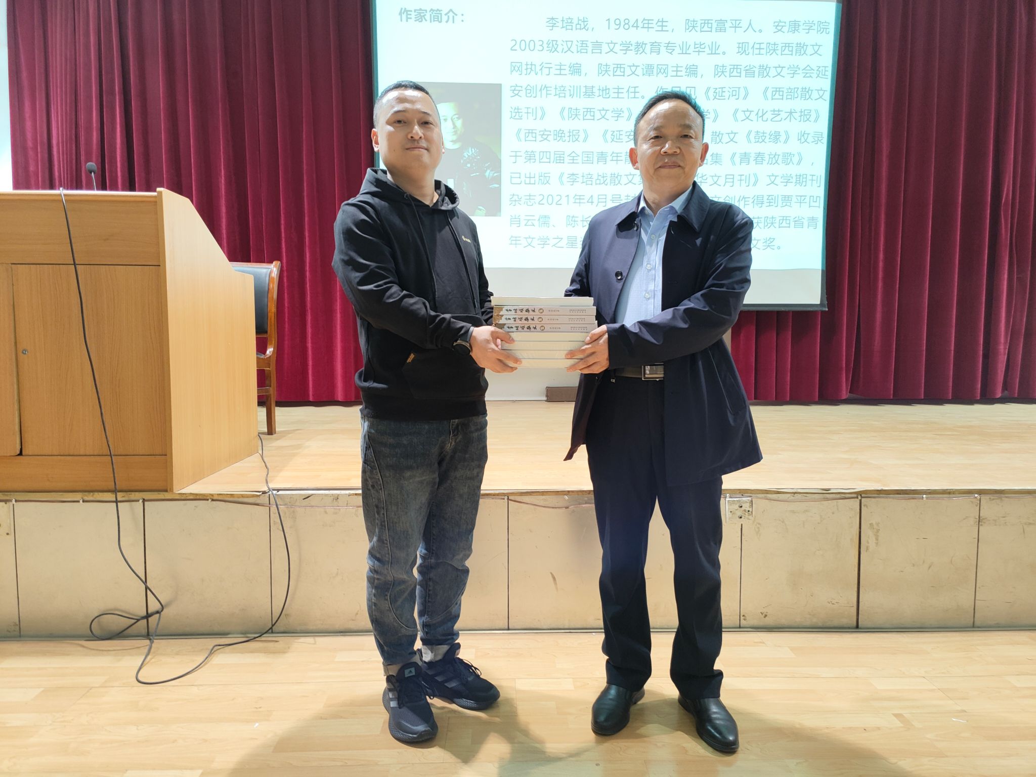 报告会开始前,杨运庚代表学院聘请李培战为koko体育官网学生文学创作兼职指导老师并为其颁发了聘书。李培战向我校图书馆和koko体育官网赠送了他近期文学创作作品《李培战散文集》。