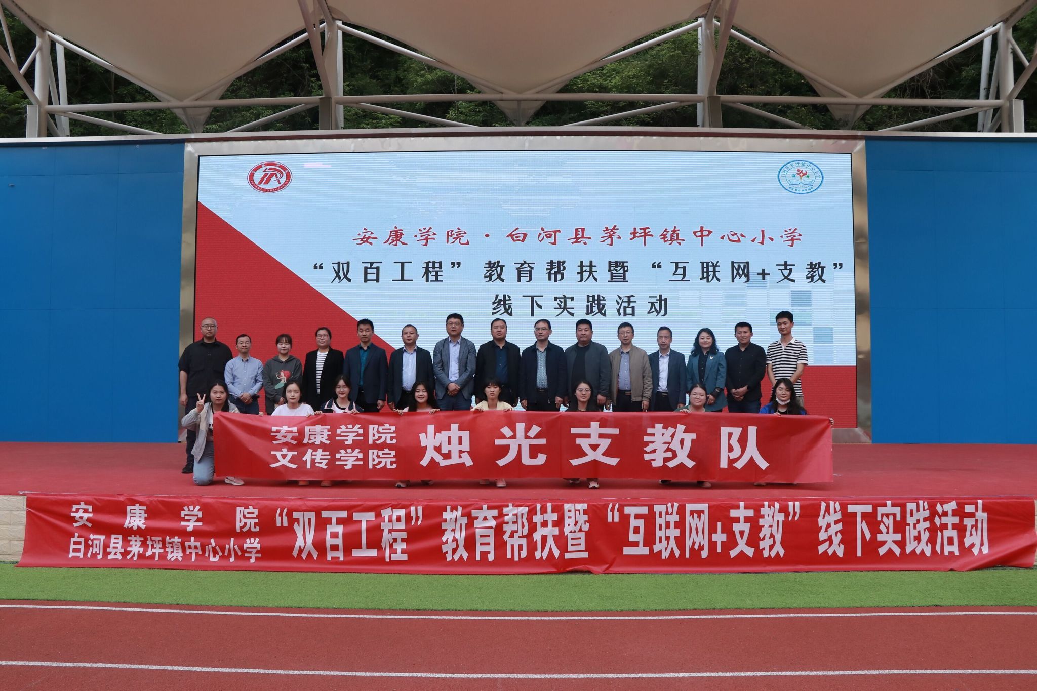 5月11日我校“双百工程”教育帮扶队80余名师生赴白河县茅坪镇中心小学,开展“互联网+支教”线下实践暨“双百工程”教育帮扶活动。