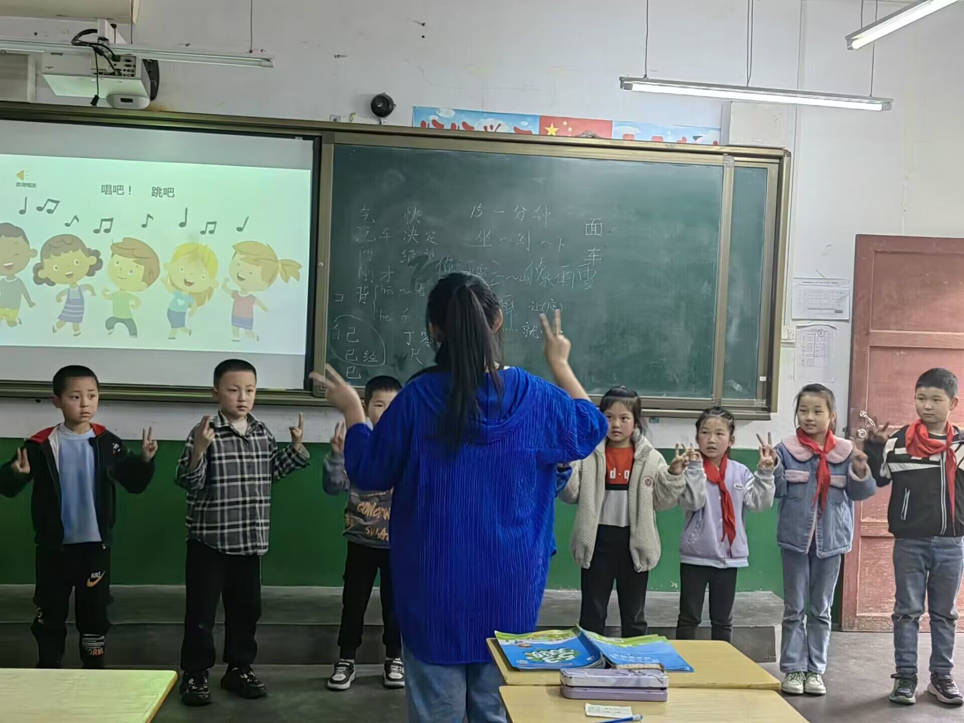烛光支教队队员史紫田同学带领小朋友们体验了一堂生动有趣的《剪羊毛》线下课,课堂轻松愉悦,师生互动热烈。课间休息时间,志愿者与孩子们玩起了“爱的抱抱”“萝卜蹲”等小游戏,快乐的笑声此起彼伏。在游戏过程中,志愿者了解了孩子们的兴趣爱好和生活,孩子们也收到了志愿者们带来的小礼物,拉近了志愿者与孩子们之间的距离。