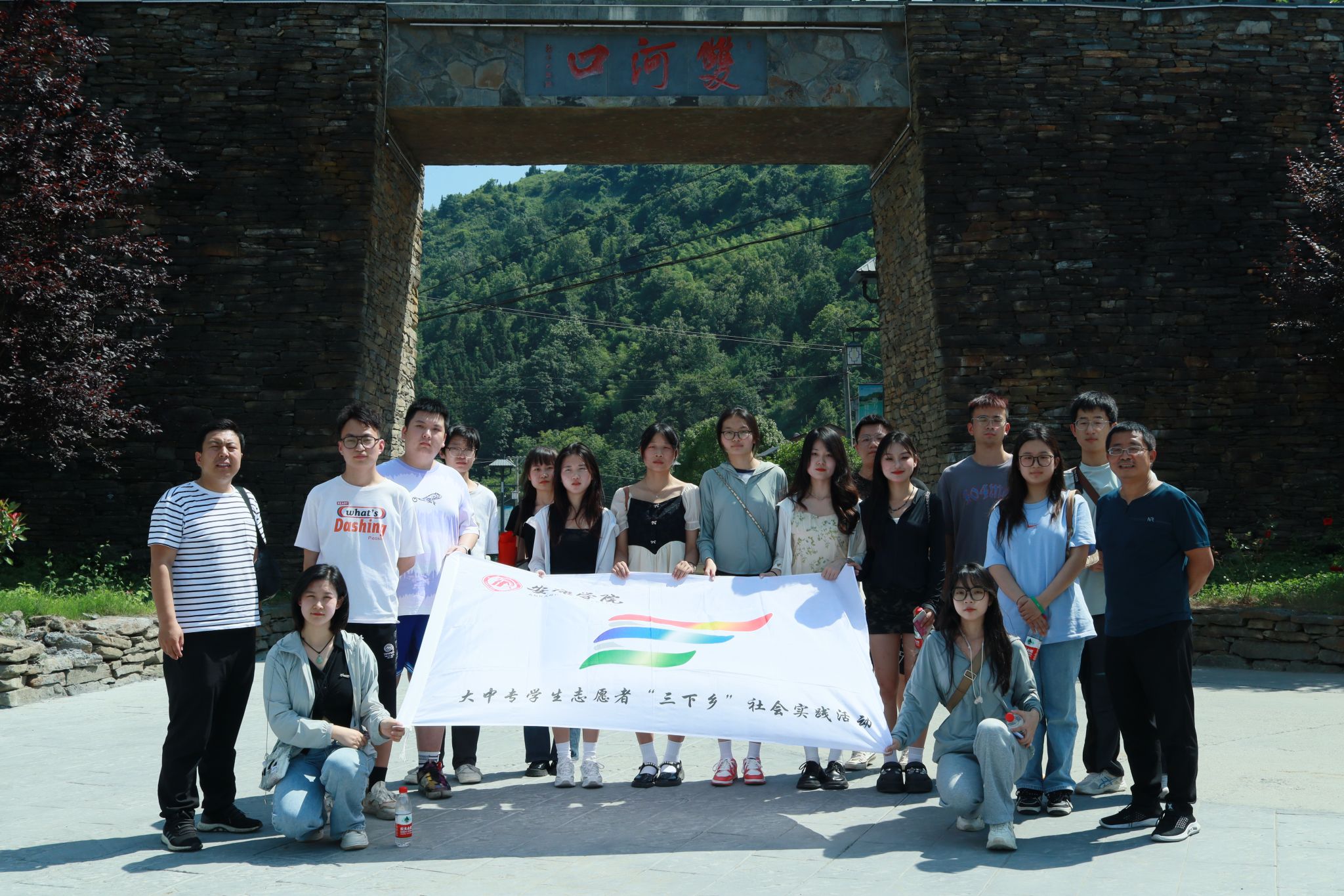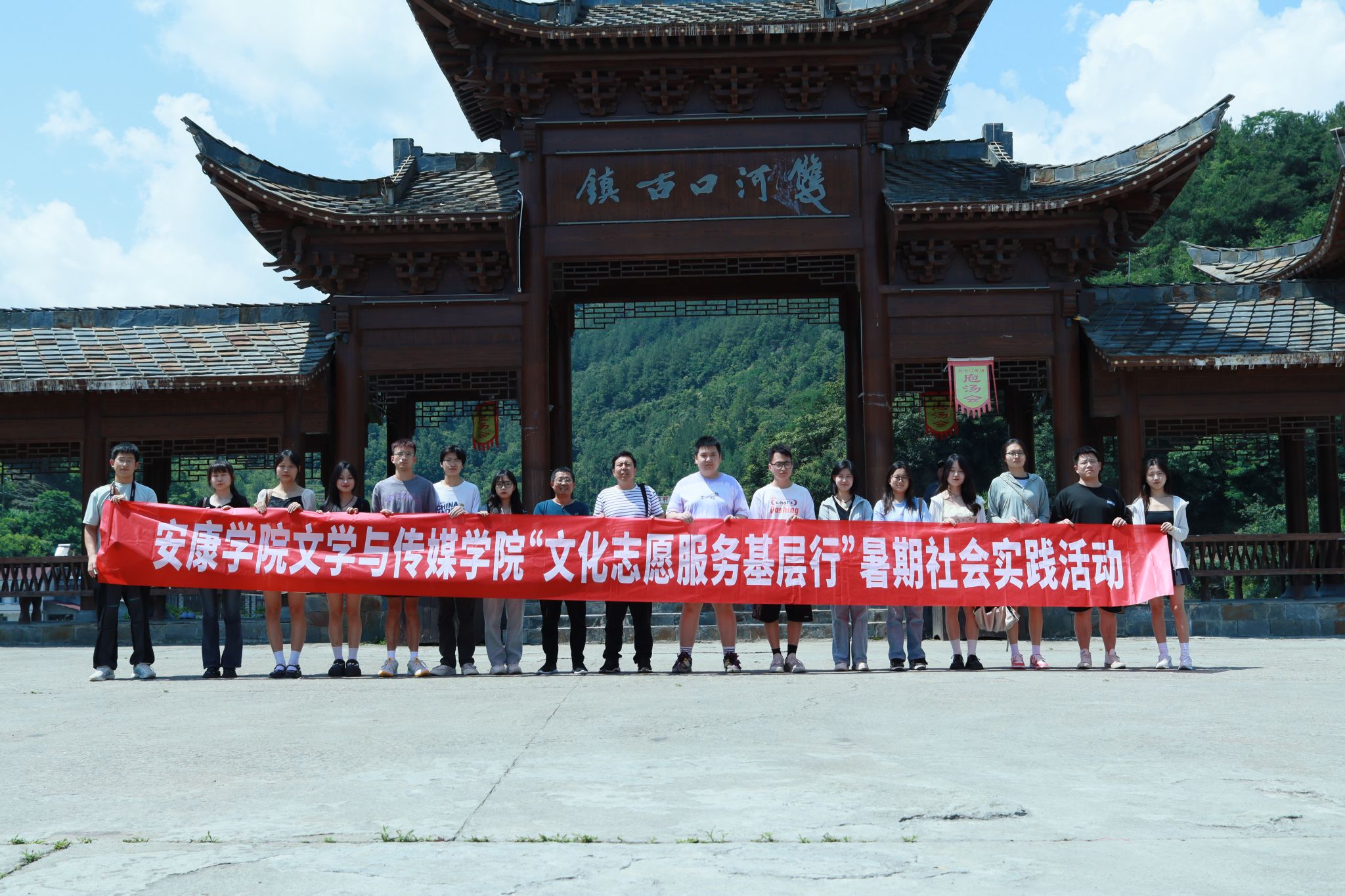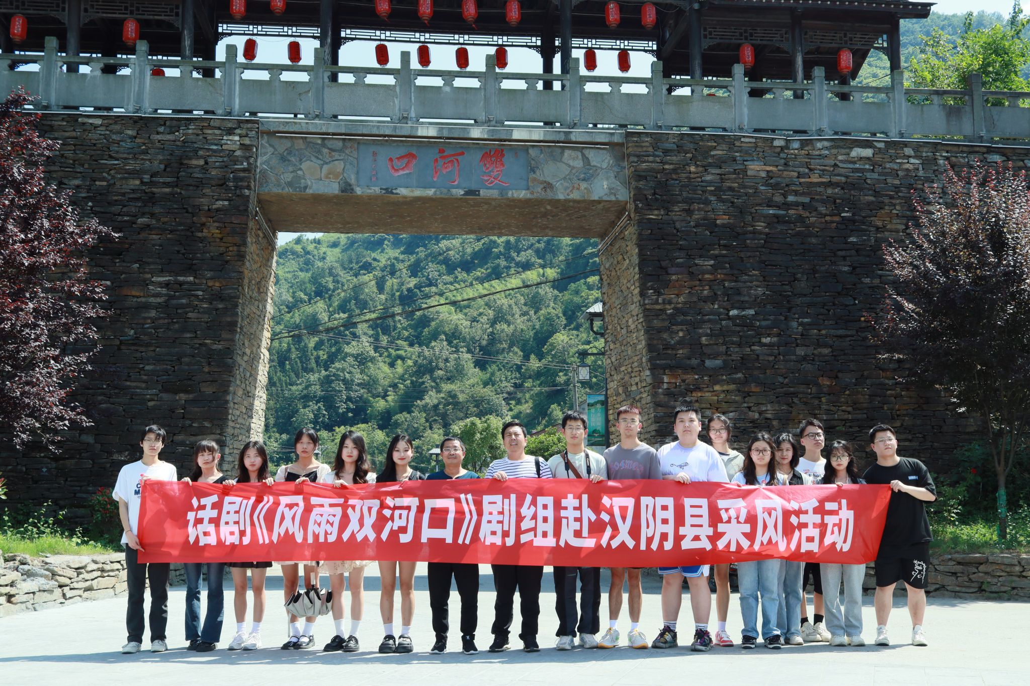 为深入学习贯彻习近平新时代中国特色社会主义思想,积极服务地方经济文化发展,koko体育官网组建了“文化志愿服务基层行”暑期三下乡社会实践服务队,并把活动的第一站选在了历史文化积淀深厚、红色文化影响很大的汉阴县北部山区双河口镇。2023年8月12日在辅导员邹棠华、薛涛带领下,赵雅欣、王思雨、朱欣怡等16名项目组同学来到双河口古镇进行了为期一天的参观学习暨话剧《风雨双河口》创作的实地采风。