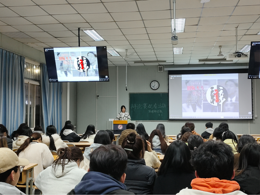 2024年3月6日晚上19点30分,koko体育官网演讲辩论社在我校江南校区十号教学楼1014教室开展了“是否能以成败论英雄”为主题的国际大专辩论赛的观摩活动。参加本次活动的有演讲辩论社全体成员。