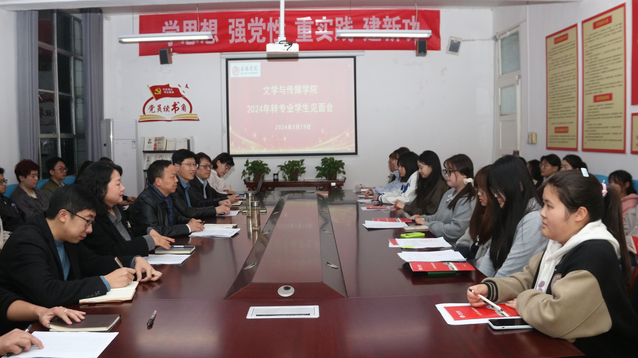 3月19日晚,koko体育官网在2307会议室召开2024年转入koko体育官网学生见面会,文学与传媒学院领导班子、综合办公室主任、2023级辅导员出席见面会,会议由院党总支副书记杨海蓉主持。