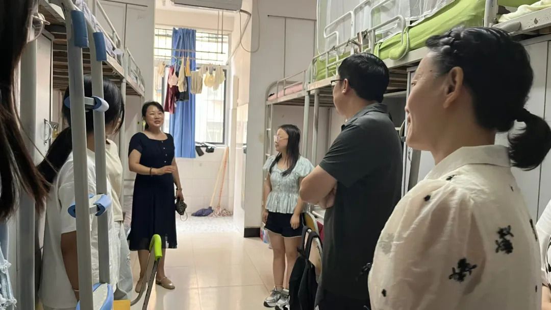 在新生宿舍,老师们详细了解同学们初入大学校后的感受及生活学习方面的适应情况。老师们细心检查了宿舍安全设施,叮嘱新生遵守寝室管理规定,保护好人身安全和财产安全,谨防电信诈骗。院长杨运庚鼓励新生树立学习目标,制定切实可行的学习计划,努力学习,为未来发展打下坚实基础。院党总支书记芦伟激励同学们要坚定理想信念,争做品学兼优之人,以良好的精神面貌融入大学生活。随行老师提醒同学们注意宿舍卫生,保持良好的宿舍环境,营造良好宿舍氛围。新生们纷纷表示,一定会积极适应大学生活,勤奋学习,不断充实和完善自己。