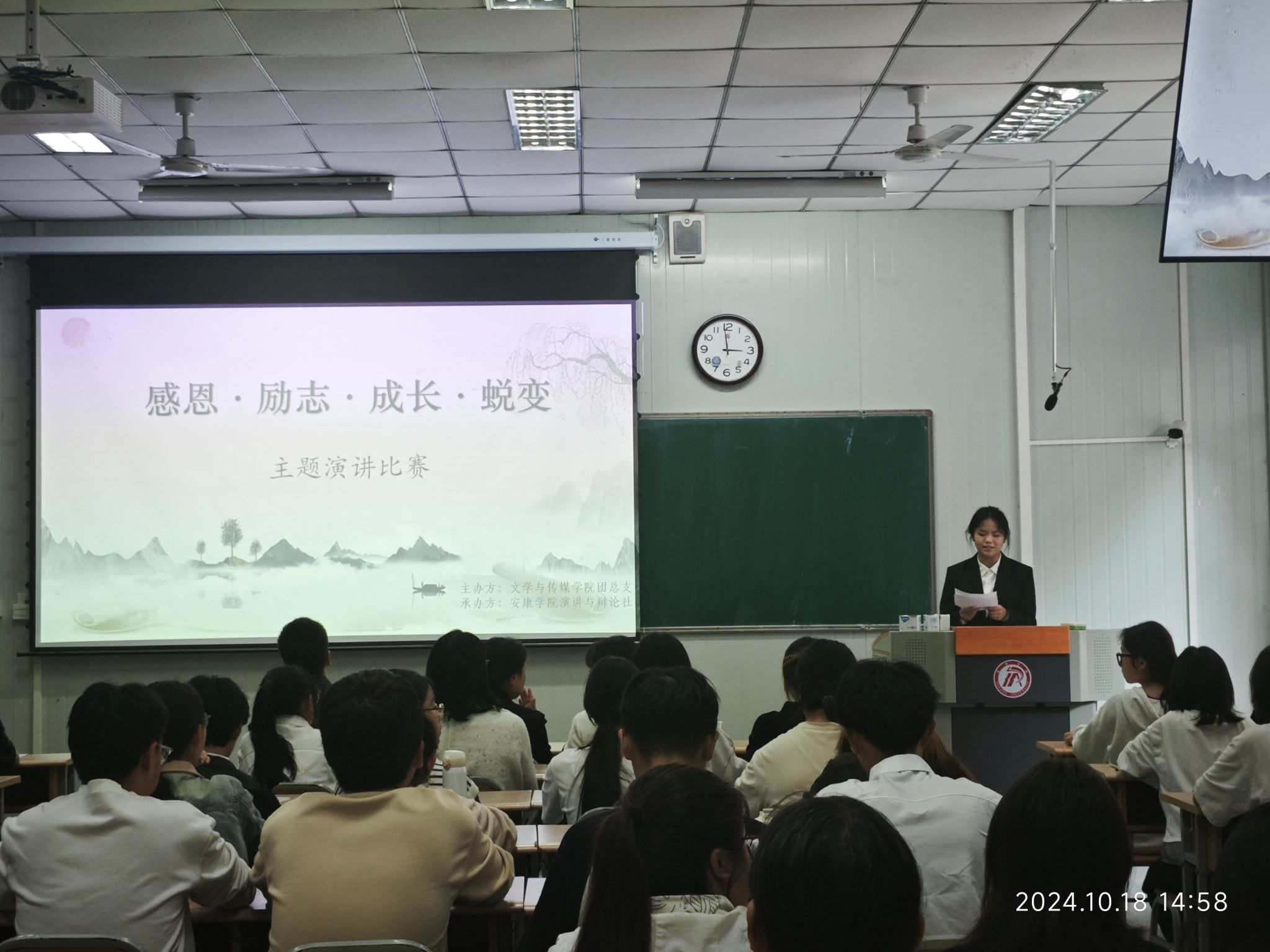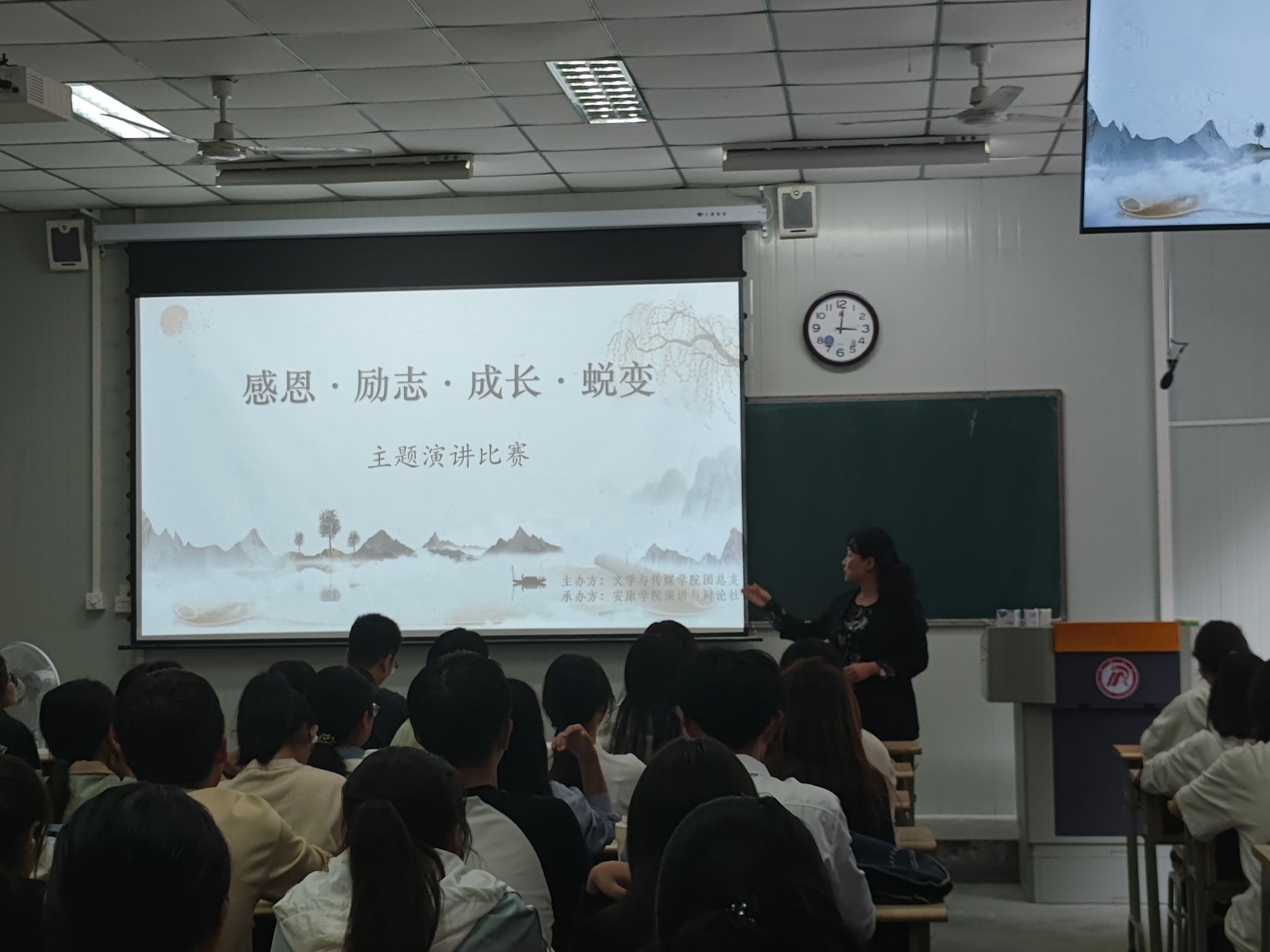 为了充分展示我校大学生的文明素养,引导大学生体悟感恩,培育感恩情怀,做有责任担当的新时代青年,10月18日下午15时,演讲辩论社在江南校区10号楼1017教室举行“感恩·励志·成长·蜕变”主题演讲比赛。koko体育官网党总支副书记杨海蓉、播音主持社指导老师黄治强、演讲辩论社指导老师余珊担任评委。演讲辩论社王淼同学主持比赛。
