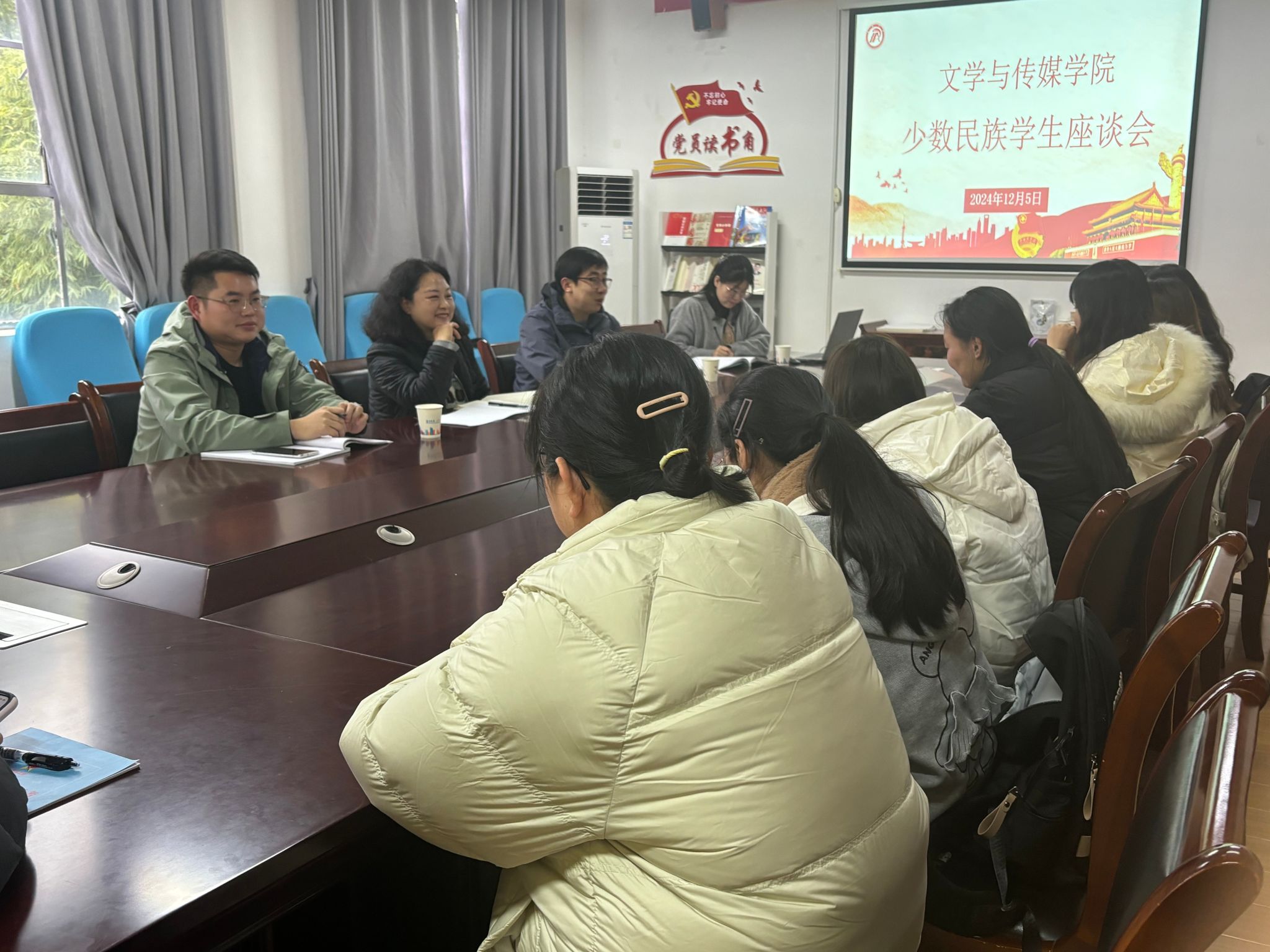座谈会在轻松融洽的氛围中展开,杨海蓉首先表达了对同学们的关心和问候,学院一直高度重视少数民族学生工作,致力于为少数民族学生提供良好的学习和生活环境。她鼓励同学们积极融入校园生活,充分发挥自身的优势和特长,与各民族同学共同进步。曹刚就专业课学习与同学们进行交流,少数民族同学在文化背景和学习习惯上的不同,并不影响追求知识的脚步,学院将为少数民族学生提供更多的学习支持和帮助,希望同学们能够珍惜大学时光,努力学习专业知识,提升自己的综合素质。