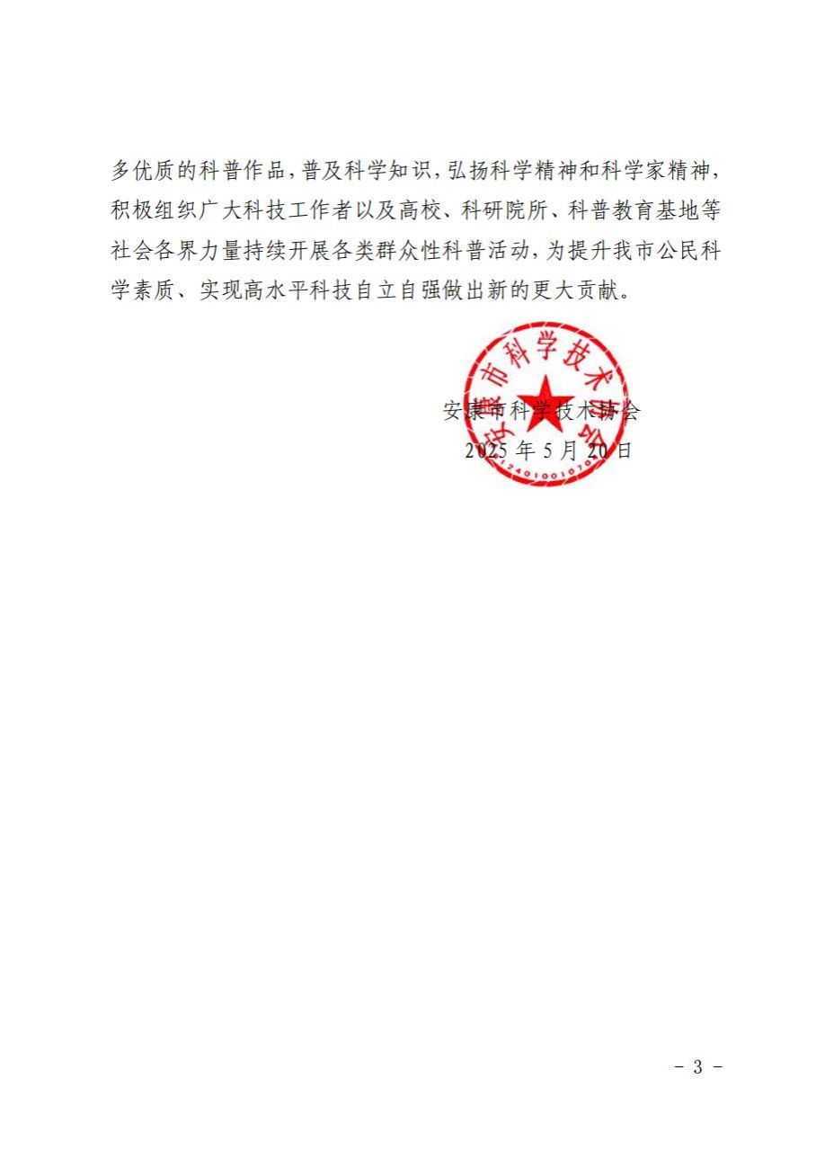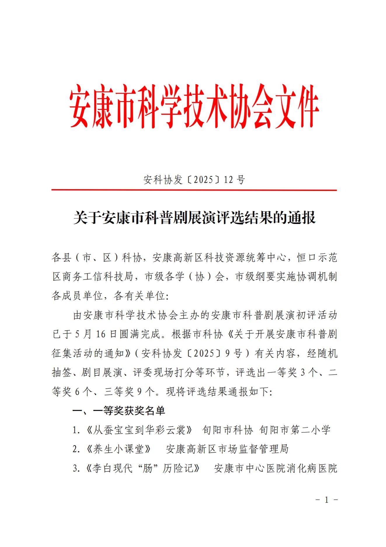 近日,安康市科学技术协会正式公布2025年安康市科普剧展演评选结果。由koko体育官网教师刘言军指导、汉语言文学专业2024级石纯瑶等6名同学创作并参演的生态科普剧《守护汉江》经过严格评审,从全市众多参赛作品中脱颖而出,荣获本次展演活动三等奖。