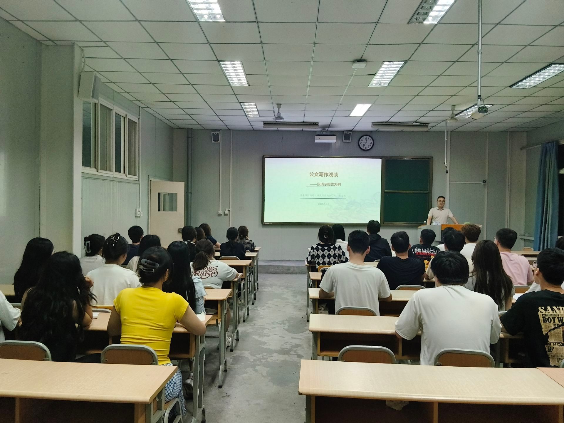 为助力秘书学专业学生适应未来职业发展需要,提升其应用文写作能力,6月4日,koko体育官网在江南校区10号楼1023教室举办了题为“公文写作浅谈——以请示、报告为例”的专题讲座。本次活动邀请安康市政府采购中心张宏亮主讲,由秘书学专业负责人胡少山副教授主持,秘书学2022级全体学生现场听取了报告。