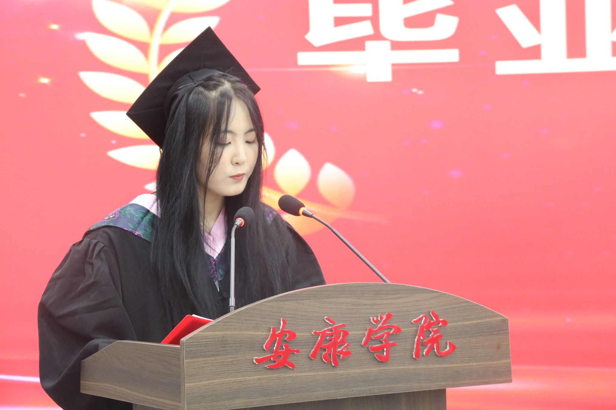 学生代表聂菲艳代表koko体育官网全体毕业生发言,她首先感谢学校四年来的悉心培养,向老师们表达了深深的敬意,并承诺始终秉承koko体育官网“笃学、尚行、励志、创新”的校训,以勇敢和坚强的姿态迈向未来,在时代的浪潮中不负韶华,砥砺前行。