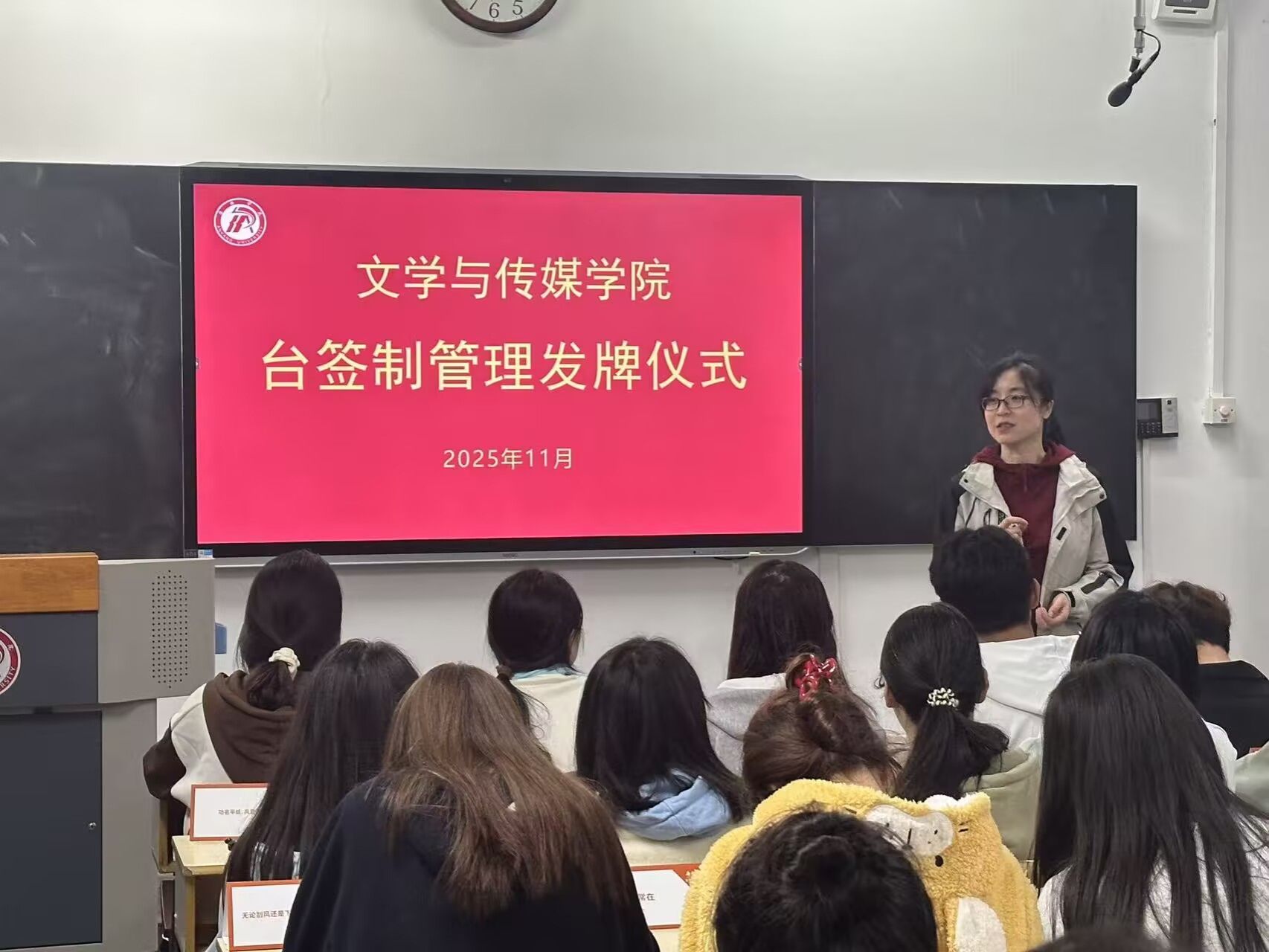 为深化学风建设,创新管理抓手,koko体育官网于11月2日正式启动覆盖2025级320名学生的台签制管理模式,并举行发牌仪式。学院党总支副书记侯红艳、辅导员喻言及全体新生参加仪式。仪式由喻言主持。