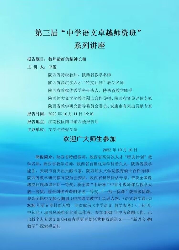 第三届“中学语文卓越师资班”系列讲座之一