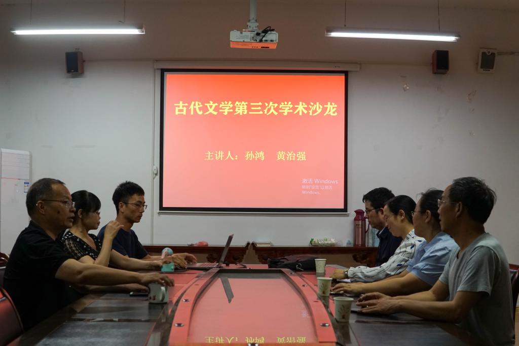 2021年6月3日晚,中国古代文学学科组第三届第四次“学术沙龙”在2307会议室成功举办。本场沙龙活动是学院本年度深入推进党史学习教育与业务工作相融合、相促进的组成部分,由教师党员孙鸿教授和青年教师黄治强老师担任主讲人。沙龙活动由郑继猛教授主持,学科组罗焕玉副教授、王丽芳副教授、安朝辉博士、关满春老师参加了研讨。