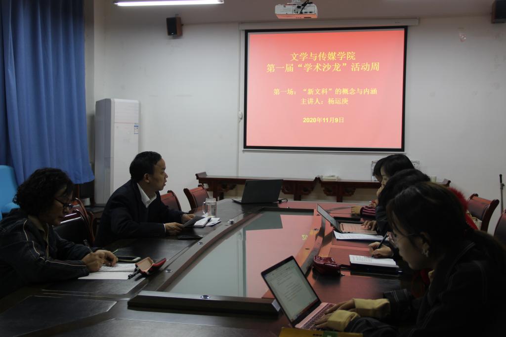 11月9日晚7时,koko体育官网第一届第一场“学术沙龙”活动在2307会议室举行。本次活动的主讲人是koko体育官网院长杨运庚教授,主题为“‘新文科’的概念与内涵”,koko体育官网语言学科组全体教师参与了此次活动。