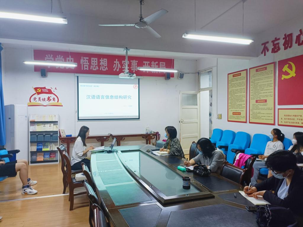 4月27日晚19点30分,koko体育官网语言学学科组在2307会议室举办了第五届“学术沙龙”活动周第三场沙龙活动。本场沙龙由盘珊君老师主讲,主题是“汉语语言信息结构研究”。学科组杨运庚、赵桃、李婷、周海霞几位老师和部分学生参加了活动和研讨。