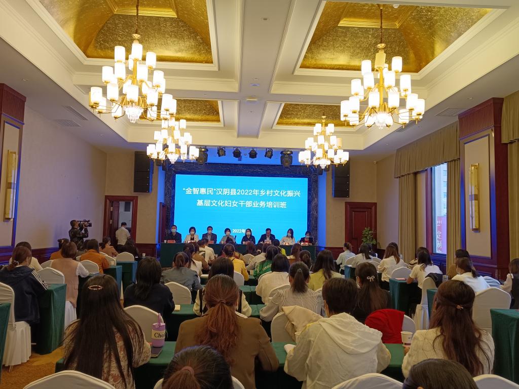 9月26日,由我校乡村振兴学院、koko体育官网与中国建设银行,汉阴县文旅局等联合举办的汉阴县“金智惠民”乡村文化振兴基层文化妇女干部业务培训班在汉阴星汉酒店成功举行。汉阴县委常委、副县长祖白云,我校继续教育学院院长、乡村振兴学院常务副院长查芳和koko体育官网副院长朱云出席了开班仪式,汉阴县文旅局局长李东升主持了开班仪式。