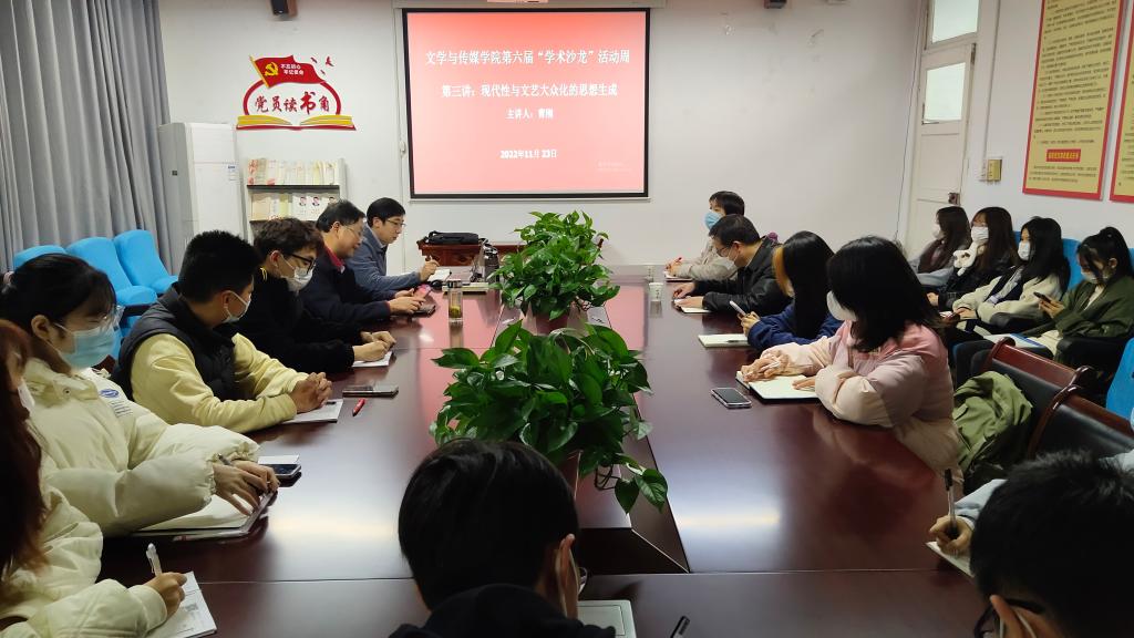 11月23日晚7点20分,koko体育官网中国现当代文学学科组在2307会议室成功举办了第六届“学术沙龙”活动周第三场沙龙活动。本场学术沙龙由曹刚博士主讲,主题为“现代性与文艺大众化思想的生成”。朱云副院长、周龙田副教授、韩文霞副教授和二十余名学生参与了沙龙活动,沙龙由周龙田副教授主持。
