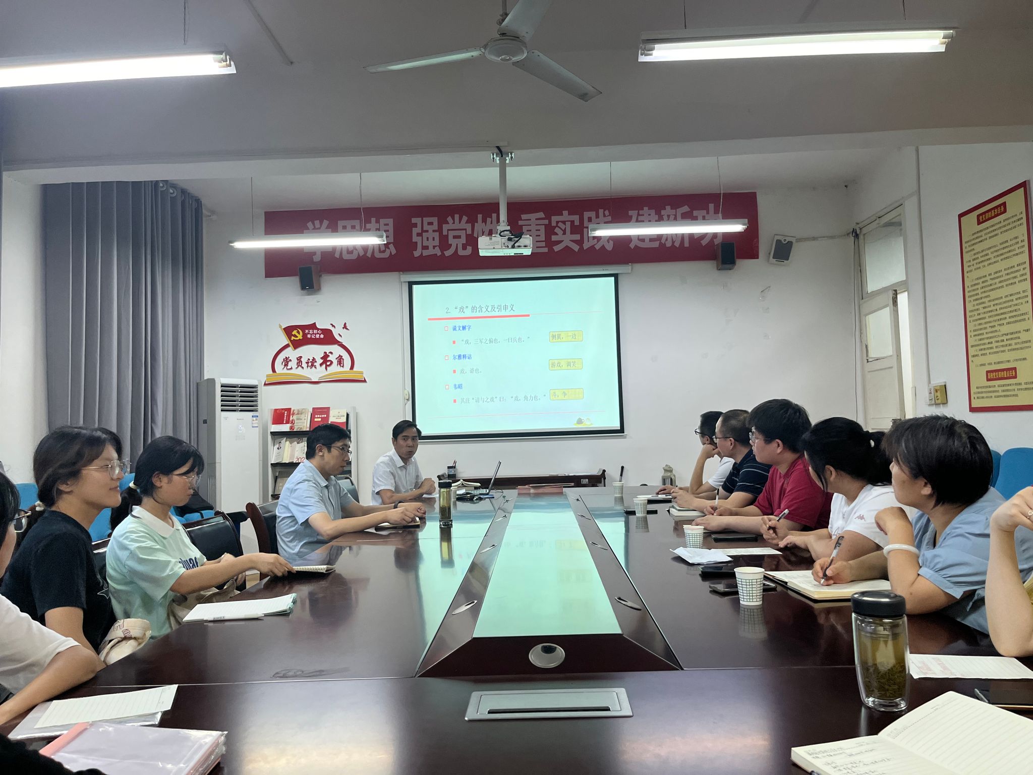 活动开始后,崔德全老师做了题为《文以贯道与以文为戏——韩愈古文观念的矛盾与统一》的学术报告。报告中,崔德全老师以韩愈的古文理论为研究对象,首先介绍了文以贯道的提出、含义以及韩愈提倡文以贯道的意图,其次详细分析了以文为戏这一概念的提出、多层次含义以及这一观念的实质,接着又阐述了文以贯道与以文为戏的矛盾与统一的关系,最后提出了以文为戏这一古文创作观念的普遍意义。