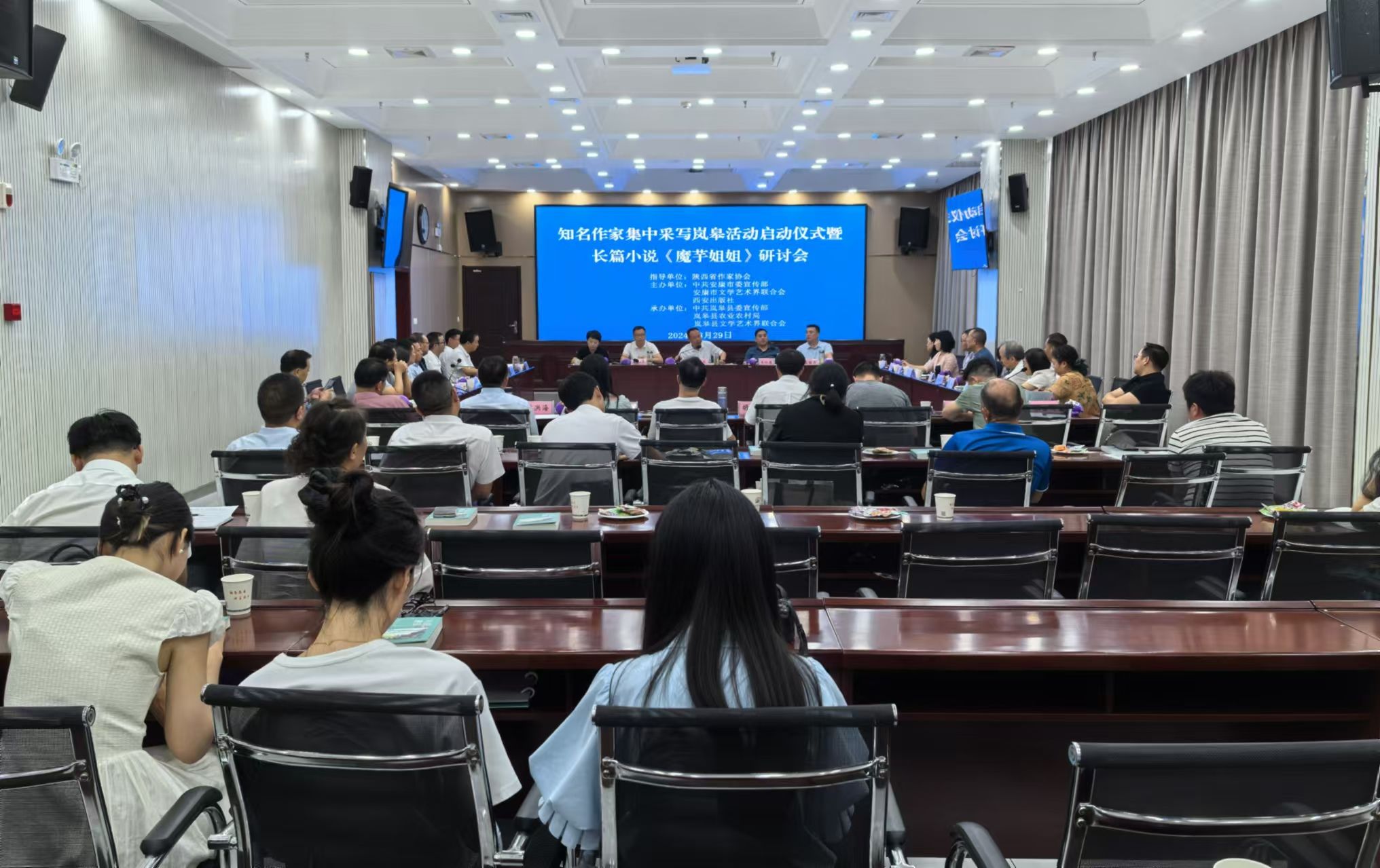 8月29日,岚皋县举行知名作家集中采写岚皋活动启动仪式暨长篇小说《魔芋姐姐》研讨会。县委书记魏小林出席会议并讲话,县委副书记、县长王仁康主持会议,县委常委、宣传部部长欧阳周菲致欢迎辞,县上领导以及来自省市知名作家、学者等参加会议。koko官网教师李春平教授,戴承元教授、韩文霞副教授、胡少山副教授应邀参加活动并做交流发言。