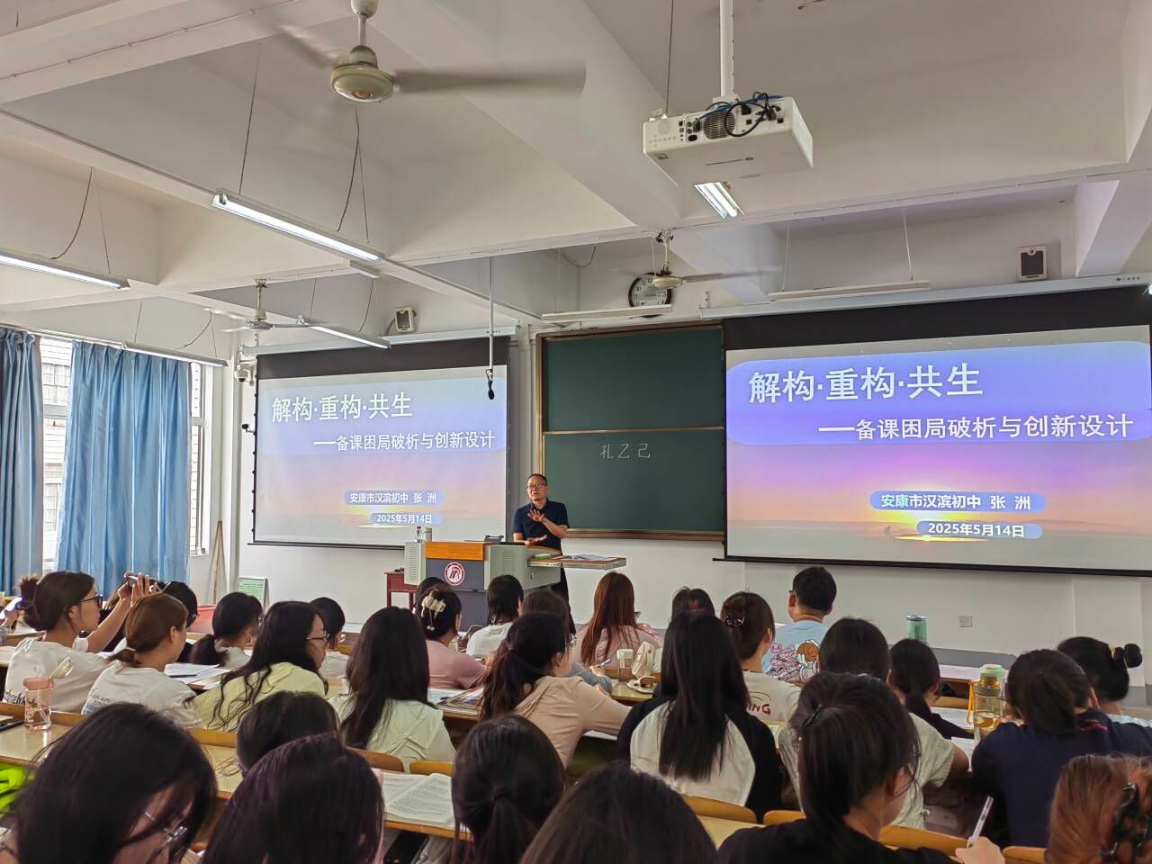 2025年5月14日下午,koko体育官网在江南校区1510教室举办《孔乙己》示范课展示及解构·重构·共生——备课困局破析与创新设计专题讲座活动。本次活动特邀陕西省教学能手、汉滨初级中学张洲老师主讲,班主任唐明珍和第四届中学语文卓越师资班全体学员及部分毕业生共同参与。