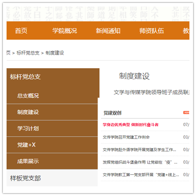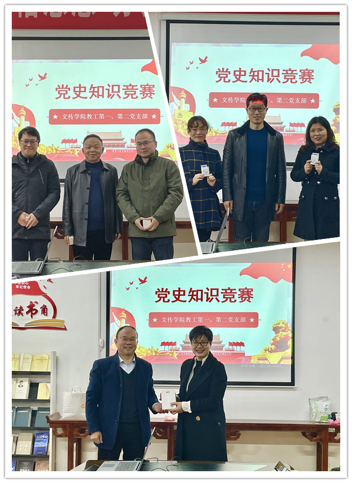 学院党总支开展形式多样的学习活动,将党史学习教育做深做实。依托两个教师党支部,设立“党员读书角”,将党史学习教育与学院教师专业背景相结合,开展“再现中国现当代文学经典作品中的党史”和“中国共产党百年新闻思想史”特色学习系列活动,通过文学作品、新闻史等专业视角探寻党史事件,又将党史学习素材反哺课堂教学,形成了党史学习与课程思政的良性互动。依托两个学生党支部,开展“讲红色故事,做红色传人”“永远的丰碑”“红色经典电影展映”“亲爱的党,我想对您说”党员微演讲、优秀宿舍微演讲、中国共产党人的精神谱系等系列学习活动。学院积极动员学生参与省内、校内各类党史学习特色活动,扩大学生党史学习参与覆盖面,取得了显著成绩。2名学生代表学校参加省教工委组织的“请党放心,强国有我”宣讲竞赛荣获二等奖2项;组建百人朗诵团积极参加学校“建党一百周年红色经典诵读比赛”,荣获特等奖1项、一等奖1项、优秀奖1项;在全校“学党史、强信念、跟党走”大学生党史知识竞赛中荣获一等奖;2名教师和40余名学生参加学校建党一百周年音乐党课演出,学院荣获“突出贡献奖”;在“我和我的支部”故事征文(微视频)大赛中荣获二等奖1项、三等奖1项;在校纪委组织的建党一百周年“我的家风故事”征文活动中荣获一等奖3项、二等奖1项、三等奖5项、优秀奖10项;在“颂家风家训,扬清风正气”书画作品比赛中荣获非专业组作品一等奖。