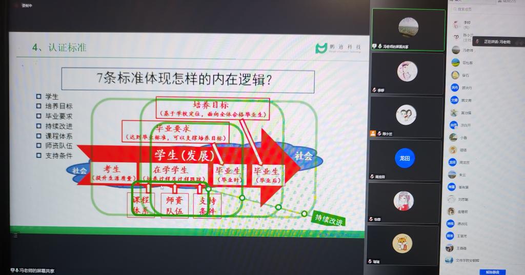导航痕迹 首页 > 师范专业认证 > 活动新闻 > 正文 政策文件 活动新闻 师范生技能大赛 koko体育官网召开师范专业培养方案及课程大纲修订线上培训会 发布人:koko体育官网 发布日期:2022年04月06日 阅读次数: 4月1日晚,koko体育官网组织全体教师在腾讯会议平台参加了师范专业培养方案及课程大纲修订线上培训会,会议由教学副院长李婷主持,认证专家冯彬老师为主讲人。 冯老师首先讲了专业认证理念体系与内涵,主要包括认证工作来源与进展、认证的三大理念、以学生为中心的教学模式、认证标准、认证底线、面向产出的机制、认证申请工作流程和评审要点等内容。接着重点以现代汉语课程教学大纲为例,详细解读了课程目标与毕业要求的关系,课程考核评价方式及评价标准的编写细则。 此次会议通过生动案例的讲解,让学院教师对师范专业认证中培养方案和课程大纲的修订有了更深的认识,为接下来的具体修订工作提供了切实可行的指导。 撰稿/摄影/韩文霞 审核/李婷 发布/崔瑜