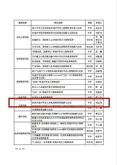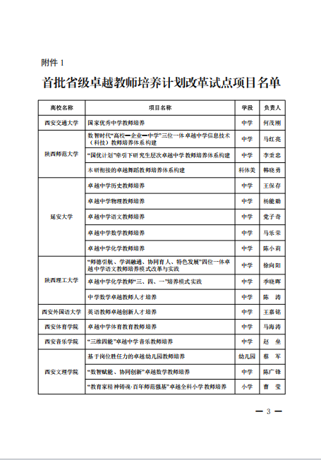 附:陕西省教育厅办公室关于公布首批省级卓越教师培养计划改革试点项目的通知