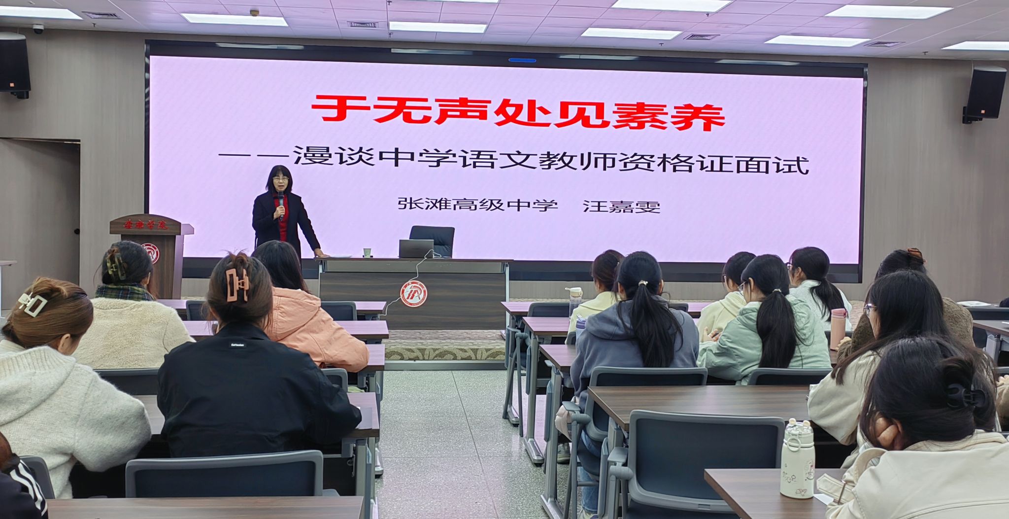 为助力学生顺利通过教师资格证面试,掌握备考策略,2024年11月20日,在图书馆六楼报告厅,koko体育官网邀请到张滩高级中学正高级教学名师汪嘉雯老师为第四届“中学语文卓越师资班”带来题为“于无声处见素养——漫谈中学语文教师资格证面试”的专题讲座活动,班主任唐明珍和师资班全体学生聆听了本场讲座。