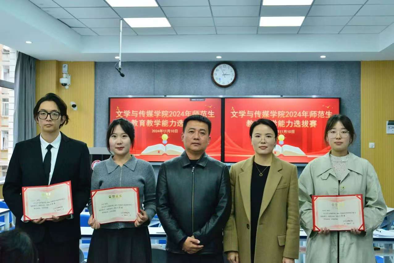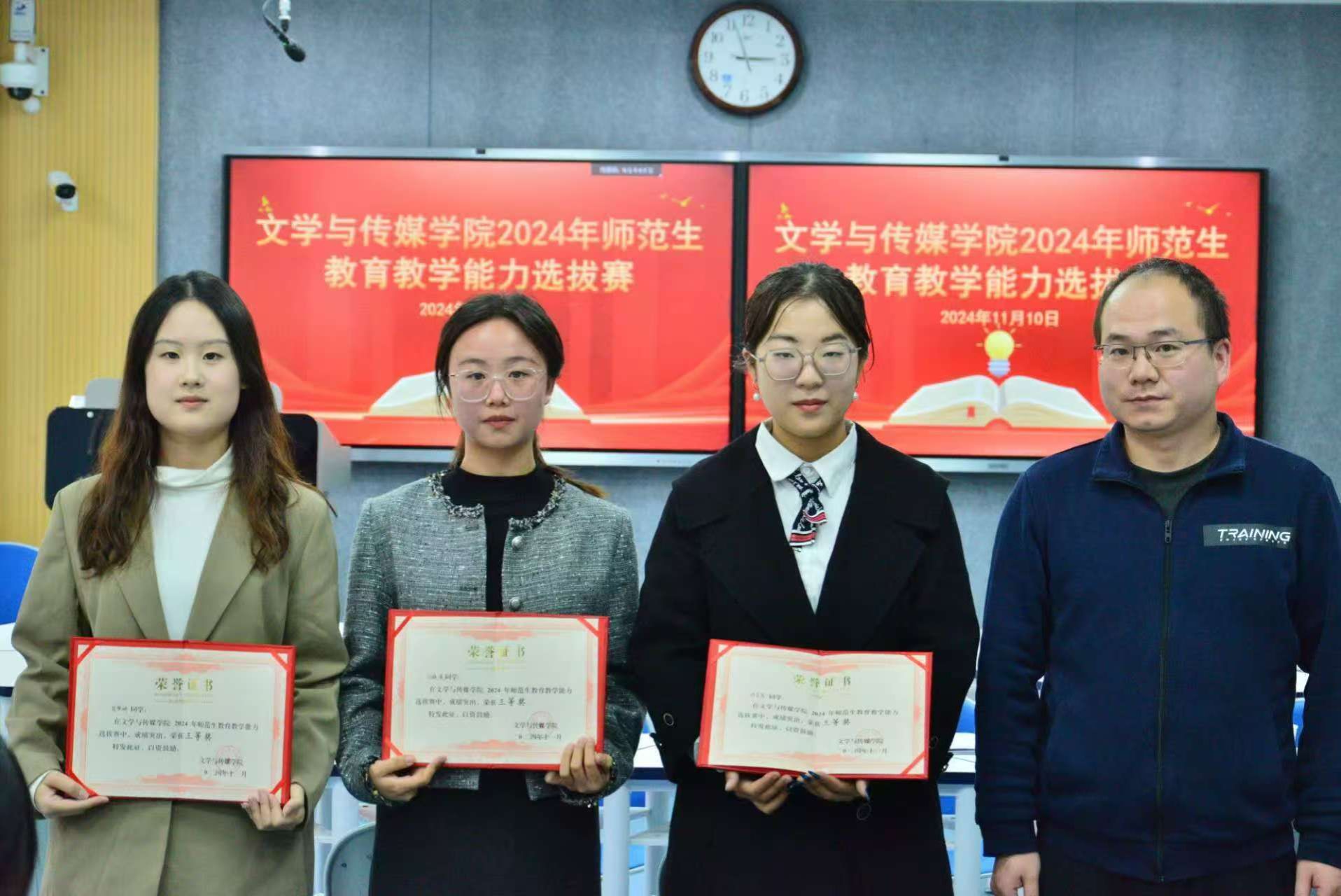 参照陕西省2024年度师范生教育教学能力大赛要求,12位选手分别从即兴演讲、粉笔字书写、教学设计方案与课件制作、说课与模拟授课、现场回答问题五个环节展示了自己的教学过程。参赛选手激情澎湃的演讲、规范美观的书写、富有创意的课件制作、逻辑清晰的说课与精彩纷呈的授课,以及竞赛中体现出来的先进教育教学理念赢得了评委与观摩师生的一致好评。
